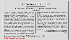 В Западной Сибири надо построить каменнолитейный завод