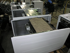 Воткинский филиал ОАО «ГАЗМАШ» в г. Воткинске, 08.11.2012 г. Впервые в жизни увидел производство бытовых газовых плит. Особенно приятно было убедиться и осознать, что базальтовое супертонкое волокно так основательно заняло свое место в газовой плите. Альтернативы ему пока нет. БСТВ изолируется жарочный шкаф плиты. Делюсь увиденным на фотографиях, они публикуются с личного разрешения директора филиала Чубаренко В.И. Больше фотографий смотрите здесь: