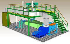 После запуска производства в Нытве я нашел человека на Украине, который продал мне чертежи установки БСТВ. Это были, конечно, не чертежи, а эскизы, большей частью нарисованные от руки. Несколько из них прикрепляю. Что-то строить по ним было очень проблематично. Мне в очередной раз повезло. Одноклассник моего папы руководил проектной группой на одном большом оборонном заводе в г. Перми и помог мне – попросил своих ребят сделать из украинских эскизов комплект нормальной конструкторской документации. КД на установку БСТВ на компьютере была изготовлена впервые в истории. Тем более профессионалами. Цветная картинка установки из этой работы показана ниже. Далее мы начали заниматься изготовлением установок, но некоторым заказчикам были проданы только чертежи. Например, по купленной у нас документации самостоятельно изготовил установки, мы помогли только с запуском производства. Фаату Фатыховиу Шайхразиеву чертежи на установку я просто подарил, потому что были с ним в дружеских отношениях – так появился завод БСТВ ООО «Блок» в г. Воткинске. КД продавалась нами также в другие места.