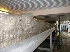 Тема посвящается отечественной технологии и конвейерной линии по изготовлению минераловатных плит повышенной жесткости из гидромассы и ее авторам.