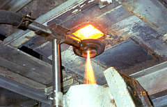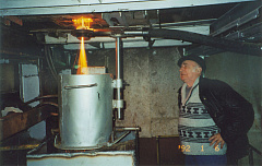 На приложенной фотографии Тихонов Р.Д. запечатлен у работающей раздувочной головки. Наверное, я не ошибусь, если скажу, что в свое время Роберт Дмитриевич был специалистом номер один по раздувочным головкам в нашей стране. Фотография сделана в г. Судогда (Владимирская обл.). Там в 1990-х параллельно базальтовому непрерывному волокну делали хорошее штапельное базальтовое волокно под торговой маркой БАЗАЛЬТИН по технологии Тихонова Р.Д.