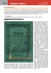 Сергей Огарышев написал: Обратимся сначала к истории. Более 100 лет назад в одном русском журнале1 было опубликовано сообщение о производстве изделий из базальта, горной магматической породы, продукта извержения вулканов. В статье подчеркивалось, что «базальту суждены, кажется, многочисленные промышленные применения.... Из этой породы теперь уже приготовляются трубы, цилиндры, кирпичи, черепицы, вазы, бутыли для химических заводов, консоли и многие другие изделия». ...1 См. «Горный журнал», Изделия из базальта, ч. III, кн. VII, 1854.