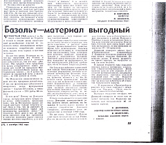 Ксерокопия статьи была подарена мне много лет назад одним из деятелей базальтовых технологий, кем именно, к сожалению, вспомнить пока не могу. Наименование печатного источника, с которого была сделана ксерокопия статьи, тоже пока остается неизвестным, можно предположить, что это была газета, хотя номер страницы «33» для газеты является слишком большим. Судя по дате «1 сентября 1962 г.» статье уже более полувека, более 55 лет. Она открывает нам интересные подробности камнелитейного дела той, уже далекой поры.