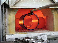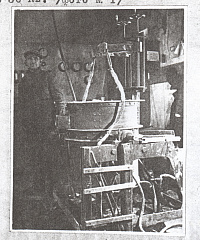 Чтобы получить прочное кристаллическое литье, эти формы – изложницы – с еще не остывшим огненно-жидким базальтом отправляют в кристаллизатор, а затем в отжигательную тоннельную печь, где поддерживается температура 850–900°. Здесь каменная отливка находится около суток, и за это время в ней происходит глубокий и полный процесс кристаллизации. Вышедшие из отжигательной печи в цех завода блестящие с поверхности каменные изделия оказываются прочными, как природный камень. При испытаниях они выдерживают сжатие до 3 тыс. кг на кв. см.
